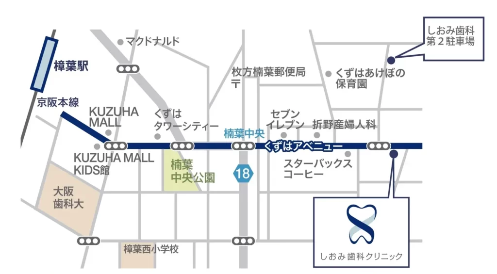 当院すぐそばの「樟葉美咲3丁目」交差点を曲がって直進してください。